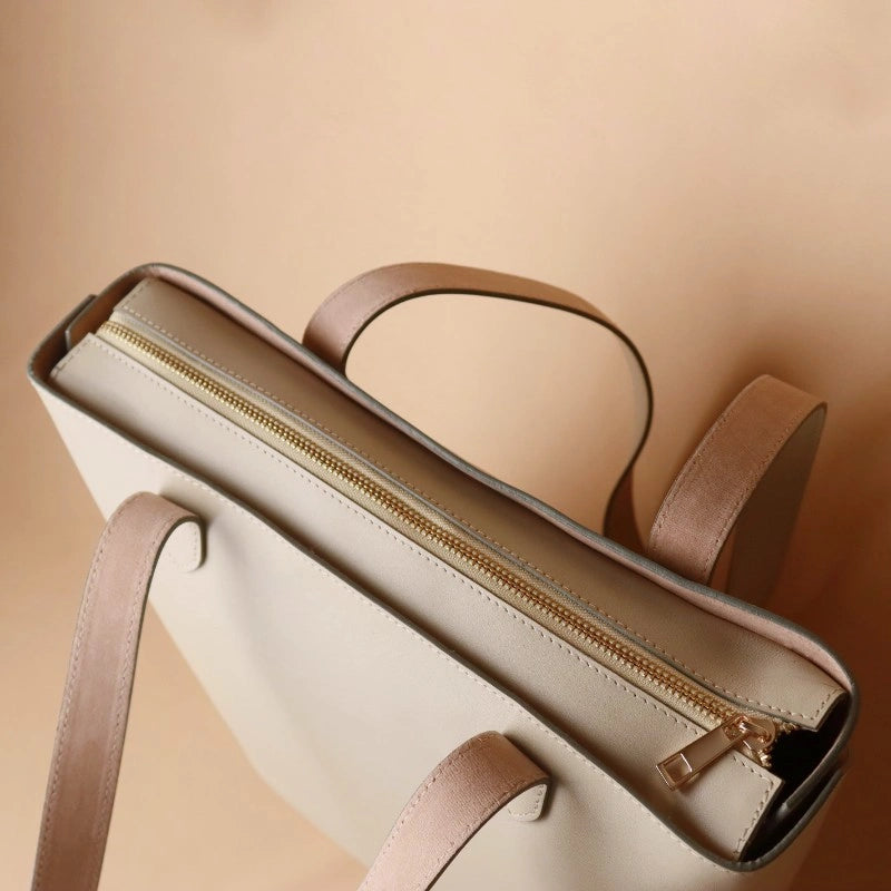 Crafted from a single panel of genuine full-grain semi pigmented cow hide. This seamless one piece design is minimal and modern yet timeless. A versatile east-west work tote that can be carried as shoulder bag or a handbag and easily paired with your summer, spring and winter wardrobe.