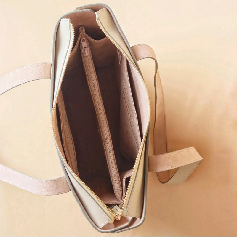 To help you remain organized, we have also included removable inserts with multiple zipped pockets. Made from soft felt in light beige color, you can carry all your essentials from your work and personal life securely and effortlessly. And in case you spill something, its easy to take it out and clean.